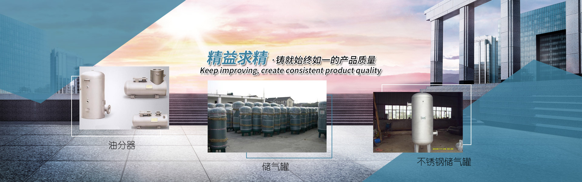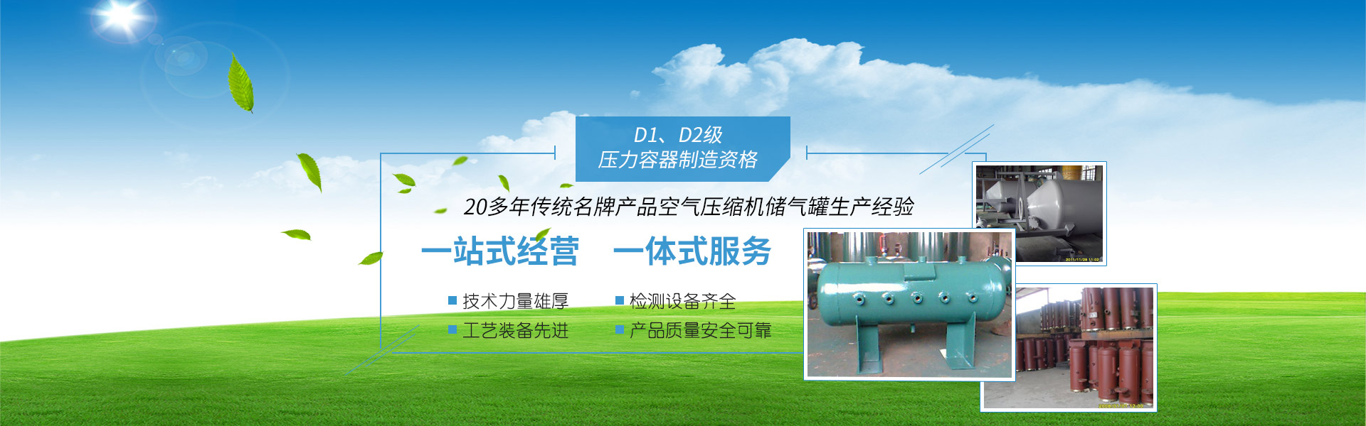 本公司的传统名牌产品空气压缩机储气罐生产已有20多年的历史,年产 20000余只,产品广泛用于石化、钢铁、环保、电子、汽车制造、发电、采矿、制药等行业,以其安全可靠、结构合理、配套使用广泛而深得国内外著名的主机企业信赖。本公司生产的一、二类非标压力容器也深得用户的赞誉。